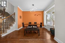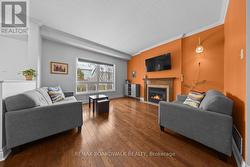 Beautiful 4 Bedroom w/finished basement on peaceful cul-de-sac in the Morris Village, stone accented front exterior, covered veranda, double-wide driveway, twin garage doors w/window details, front door w/transom window, ceramic-tiled foyer, 9-foot ceilings, crown moulding, open dining room w/hardwood flooring, high baseboards & oversized window w/transom, living room w/gas fireplace & accent mantle, centre Island eat-in kitchen w/tile backsplash, double sink over head window, upper & lower decorative mouldings, pot lighting, rear patio door to sunroom w/electric fireplace, vaulted ceiling & multiple windows, rear hallway includes pantry storage, 2 pc powder room & inside access to 2 x car garage, open staircase w/oak railings, second-level landing w/side window & linen closet, primary bedroom w/walk-in closet & private four-piece ensuite finished w/ceramic tile, rear bedroom well-suited as a nursery, plus two front bedrooms w/twin windows & double-wide closets, four-piece main bathroom w/ceramic tile, laundry area w/overhead shelving, finished basement multi function Rec Room w/two large windows, wide plank flooring, pot lighting, ideal for media room, play space, or home gym, 2 x seasonal storage closet, separate utility room w/soaker sink, rear fenced yard w/Eastern exposure & elevated barbecue deck, 24 hour irrevocable on all offers (id:27)