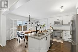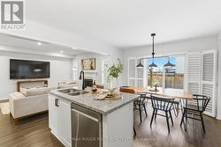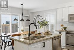 Beautifully upgraded, spacious 3+1 bedroom, 4-bathroom home offering incredible versatility for families, professionals, and multi-generational living. Located across from Northglen Park and just a 2 minute walk to the new Northglen Orchard P.S. (JK to grade 8 opening September 2026), this property combines everyday convenience with exceptional functionality. The main floor welcomes you with a bright living and dining area featuring pot lights, upgraded window coverings, laminate flooring, and California shutters. The cozy family room with a gas fireplace provides the perfect space to unwind, while the large kitchen impresses with granite countertops, stainless steel appliances, a breakfast bar, and a walkout to a deck overlooking a fully fenced backyard oasis, ideal for entertaining or relaxing outdoors. A dedicated office/den/workspace on the second floor makes working from home effortless featuring a built-in desk. Added practicality comes with main-floor laundry with direct garage access, upgraded lighting, faucets, and custom shelving. Upstairs, the spacious primary bedroom serves as a true retreat, complete with a large 4 piece ensuite bathroom and two walk-in closets. Two additional bedrooms offer generous closet space and natural light. The fully finished, completely independent basement is a standout feature, offering a true in-law suite with its own separate side entrance. It includes a full kitchen with under cabinet lighting, large living/dining area, private laundry, one bedroom with a 3-piece ensuite and pot lights throughout, perfect for extended family or potential rental income. Additional highlights include a 1.5 car wide garage, extended and wide driveway with parking for up to 4 vehicles, upgraded bathroom lighting and thoughtful finishes throughout the home. This is a rare opportunity to own a move-in-ready property in front of a park and brand new school that truly checks every box for space, comfort, and flexibility. (id:27)