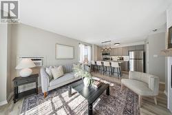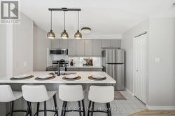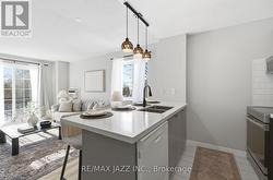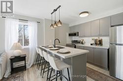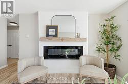 Welcome to this bright and beautifully upgraded corner unit condo, offering an abundance of natural light and a sought after southwest view overlooking nature and a nearby park. This 2 bedroom, 1 bathroom home features modern light fixtures, tasteful upgrades throughout, and a functional layout ideal for everyday living and hosting.The spacious primary bedroom includes a walk-in closet, while the open concept living area is highlighted by a custom fireplace wall that adds warmth and character. The kitchen is equipped with quartz countertops, a convenient breakfast bar, and mostly upgraded appliances (2023), making it perfect for both casual meals and entertaining. The bathroom also features sleek quartz countertops for a cohesive, modern feel.This unit comes with two parking spaces and is located in a well maintained condo community with fees that cover all landscaping, snow removal, maintenance and cleaning of common areas, garbage/recycling removal, Rogers high-speed internet and ignite TV! Situated in a fantastic location close to schools, parks, amenities, HWY 401, and the future go station extension; this condo offers the perfect blend of convenience, comfort and lifestyle. (id:27)