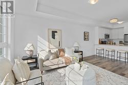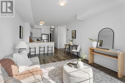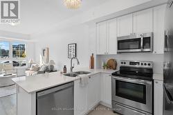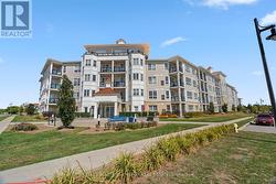 Welcome to this beautifully appointed main-floor 2-bedroom, 2-bathroom condo, ideally situated just steps from the shoreline and conveniently close to the elevators. Enjoy breathtaking views of Lake Ontario from your private terrace-an ideal spot to enjoy morning coffee or relax while taking in stunning sunset views. Inside, the spacious open-concept layout is enhanced by modern finishes throughout. The gourmet kitchen features quartz countertops, ample cabinetry, and a convenient breakfast bar, perfect for everyday living and entertaining. The bright living and dining area seamlessly extends to the terrace, filling the space with natural light. The primary bedroom offers a tranquil retreat, complete with a large closet and a luxurious 4-piece ensuite with contemporary fixtures. A generously sized second bedroom and an additional full bathroom provide flexibility for guests, family, or a home office. Residents enjoy exclusive access to the Admiral Club, offering resort-style amenities including a fully equipped fitness centre, indoor pool, theatre room, library, and party room. Additional highlights include in-suite laundry, premium flooring, and easy access to all building amenities. Experience the convenience of main-floor living with no reliance on elevators, all within close proximity to walking trails, parks, shopping, and transit. Don't miss this opportunity to live in one of the area's most sought-after lakeside communities. (id:27)