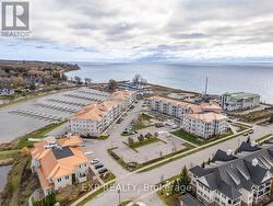 *Marina View* Step inside this thoughtfully designed condo and you're immediately welcomed by a bright, open living space that feels both comfortable and refined. The living room offers plenty of space to relax and flows seamlessly into the kitchen, where quartz countertops, rich cabinetry, and the crystal light fixture create a beautiful focal point. Just off the main hallway, the den/foyer offers a versatile bonus area, while the bedroom features its own 4-piece ensuite, a remote-controlled ceiling fan, and serene views. Every window in the unit looks out over the marina, giving you stunning sightlines of Lake Ontario and Bond Head right from your sofa. The balcony becomes a peaceful retreat-perfect for morning coffee, fresh air, and watching the boats come and go. With two full bathrooms, in-suite laundry, two parking spots, and a locker, the layout is designed for both comfort and convenience. Beyond the unit, the Port of Newcastle community shines with its friendly atmosphere, secured entrances, and exceptionally maintained buildings and grounds. Residents love the lakeshore walking trails, Wilmot Creek conservation paths, and the pet-friendly neighbourhood-ideal for anyone who enjoys nature, tranquillity, and a true sense of pride of ownership throughout the community. Maintenance Fees include a membership to the Admiral's Club whose amenities include: Oversized indoor pool, Lounge, Games room, Clubhouse facility, Preferred pricing on dining and marina services, Casual dining, Fishing, Marina, Boat slips, Hiking trails, Member beach area, and a Children's playground. Located just a few minutes from the 401 (id:27)
