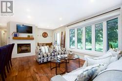 Step into this fully updated bungalow where modern comfort meets peaceful country living. The bright, open-concept main floor welcomes you with sun-filled living and dining spaces, all tied together by new hardwood flooring. The chef's kitchen is the heart of the home, featuring an oversized island, abundant quartz counter space, and generous storage - perfect for everyday living and entertaining.The spacious primary suite offers a relaxing retreat with a stylish feature wall and custom closets in two of the three bedrooms. A beautifully renovated 4-piece bathroom completes the main floor.The lower level expands your living space with a warm and inviting great room, complete with a propane fireplace and built-in surround sound. You'll also find a dedicated laundry room and plenty of storage. A major bonus is the separate in-law suite, complete with its own entrance, laundry hook-up, brand-new 3-piece bathroom, and flexible bachelor layout. Create a private suite, ideal for extended family, guests, or rental potential. Outside, enjoy the best of country living on a private lot featuring a custom play area, in-ground trampoline, and a powered 12x24 shed. The attached two-car garage is fully insulated and ready for year-round use. A rare opportunity to enjoy country living just minutes from every amenity, including easy access to the 115, 401 and 407, giving you the perfect blend of convenience and tranquility. With countless updates - roof (2019), 200-amp service (2019), furnace (2021), hot water tank (2018), kitchen (2021), upstairs bath (2021), lower-level fireplace (2023), and lower-level bath (2025) - this home offers turnkey peace of mind for years to come. (id:27)