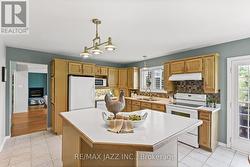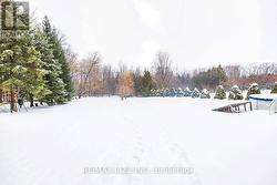 Thoughtfully designed for fully accessible living, this fabulous Mitchell Corners custom built home includes a full elevator, ramps, an electronic entry door & a beautifully designed barrier-free ensuite. Nestled on a park like lot of 3/4 acres with sweeping lawns, full grown trees & idyllic privacy, this gorgeous open concept home offers a spacious floor plan of 2,882 sqft above grade, plus a sensational 4-season sunroom addition that overlooks the expansive rear yard. It's just magical! Numerous updates abound, including shingles ('15), furnace & A/C ('20), HRV/HEPA system ('21), sunroom ('09), fantastic ensuite ('20) featuring a jet tub, curbless shower, & double vanity, & a spectacular custom W/I closet fit for any fashion queen! The voluminous sunken living room features California shutters, hardwood floors, vaulted ceilings, & a gas fireplace, all overlooked by a spacious formal dining room with W/O to the sunroom. A convenient main floor office offers added functionality. The large kitchen & family room combination boasts a wood-burning fireplace, large island, eating area, & W/O to extensive decking & a 21ft aboveground pool. A handy powder room & main floor laundry with direct garage access complete the main level. Upstairs, the primary suite boasts engineered hardwood, W/O to balcony, elevator access, diva-worthy W/I with a plethora of custom shelves & cabinets, & 5-pc accessible ensuite with skylight. Two additional bedrooms are serviced by an updated 4-pc bath. The full, unspoiled basement with 2-pc rough-in offers wonderful potential to tailor the space to your needs. Serene & private, the entire lot boasts bountiful mature trees & gardens, a solar-heated aboveground pool (10 years old), & two garden sheds. Additional features include a generous double garage & driveway parking for 12 cars! Country but close, Mitchell Corners is a highly sought after community at Taunton & Trulls roads, offering close proximity to every conceivable amenity plus the 407! (id:27)