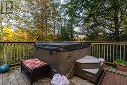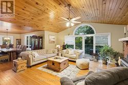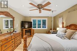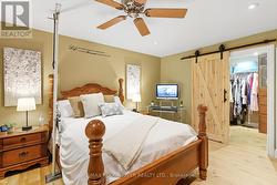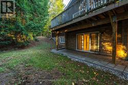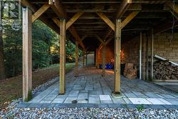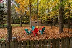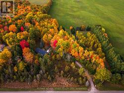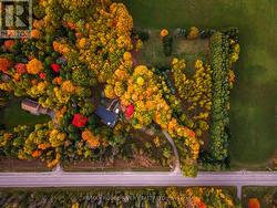Welcome to your own private 4.69-acre hobby farm retreat! This custom-built bungalow offers an exceptional lifestyle surrounded by mature trees and breathtaking ravine views, an enchanting woodland setting that feels like a true getaway while still close to modern amenities. Step inside through the grand double door entryway to discover an open-concept layout showcasing rich hardwood floors, vaulted pine ceilings, and wall-to-wall windows that flood the home with natural light. The stunning great room features a floor-to-ceiling brick fireplace and a walkout to a large wraparound deck with a hot tub, overlooking total privacy and serene natural beauty. The formal dining room also opens to the deck, creating the perfect flow for indoor-outdoor entertaining. The massive eat-in kitchen is a chef's dream, boasting custom cabinetry, a wall pantry, stainless steel appliances, and pot lights, with a bright breakfast area framed by large windows and scenic views. The primary bedroom offers a semi-ensuite bath, walk-in closet, and warm hardwood flooring, while the second bedroom provides ample space and sunlight. The lower level extends the living space with a bright family room, additional bedrooms, a full bathroom and a walkout to a wraparound patio, ideal for guests or multi-generational living. Equipped with a UV water treatment system, ensuring clean, safe water. Outside, discover a nature lover's paradise, walking trails, a maple syrup sugar shack with 40 maple trees, a fenced dog run, and a massive garden ready for your green thumb. You'll find apple, pear, and cherry trees, strawberries, raspberries, and wine grapes, and perennials that return year after year, attracting local wildlife and offering an ever-changing landscape through the seasons. Whether you're relaxing in the hot tub, making your own maple syrup, or simply soaking in the peaceful sounds of nature, this idyllic hobby farm delivers the perfect blend of comfort, character, and countryside charm! (id:27)
