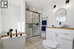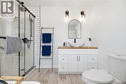 Welcome to this fully renovated bungalow featuring 2 bedrooms and 2.5 baths. Excellent location just down the street from Sunset Beach and a quick walk to all that downtown Collingwood has to offer. Come in and be greeted by a bright and cozy living space made possible by large windows and plenty of pot lights. No detail was missed in the kitchen, with stainless-steel appliances, gas stove, quartz countertops and soft close cupboards. The primary bedroom offers a walk-in closet and spa-like ensuite with heated flooring and a rain-head shower. The finished basement is perfect for entertaining with a wet bar and space for five TV’s, you’ll definitely want to see it! The basement is complete with plenty of storage and another full bathroom with heated floors. The sizeable backyard contains two raised garden beds, two sheds, and gas hookup for a BBQ. Come and check out what this property has to offer. (id:27)