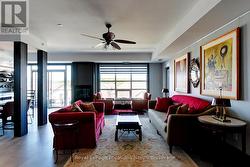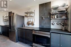 PENTHOUSE CONDO IN THE SHIPYARDS - Side Launch Building. Enjoy year-round views of the Escarpment. The FOUNDRY, as it was named by the architects, a 1,050 (approx.) square foot, one-bedroom condo, with 1.5 bathrooms, has been reimagined and completely renovated by KDT designs. Its unique minimalist style maximizes space and light. Steel clad cabinetry, custom concrete bathroom sinks, open concept closets, and new concrete style flooring create a calm, clean, airy environment from which to watch the Escarpments changing seasons. Did we mention you can view them from inside, in front of the fire during the winter, or from one of your two balconies during the summer? New Samsung appliances, a smart toilet in the ensuite, and a new, owned HW tank, complete this move in ready condominium. The SIDELAUNCH building is a secure, well-maintained building. The buildings main floor has a renovated social room with a full kitchen, dining and sitting area with a TV, and an outdoor dining and BBQ area. The elevator takes you to/from your unit on the third floor, and the underground parking garage where you have a dedicated parking space, and storage locker, along with a common bike and kayak storage room. (id:27)