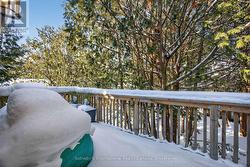 Welcome to 345-11 Harbour Street West, a beautifully updated 2-bedroom end-unit townhouse condominium in one of Collingwood's nature-rich communities. This ground-floor retreat has been thoughtfully designed to feel comfortable, functional, and easy to live in. Vaulted ceilings, an open-concept layout, upgraded lighting, and a gas fireplace create a warm, inviting atmosphere-perfect for relaxed evenings or entertaining. The classic chalet-style kitchen features clean, updated cabinetry, while the primary bedroom is enhanced with custom built-ins for both function and style. A convenient all-in-one washer/dryer unit completes the home's practical layout. On the second floor, just off the living area, Step outside to your private balcony, surrounded by mature trees for a peaceful, tucked-away feel. A second private deck off the primary bedroom offers serene wooded views and a seamless connection to the outdoors. Enjoy parking right at your door and a front-porch storage locker, ideal for skis, bikes, and seasonal gear. This West-side location offers a quick walk to nearby plazas, as well as direct access to Cranberry Golf Course and the Georgian Trail for walking and biking. Blue Mountain's ski hills and Collingwood's downtown shops and restaurants are just a short 7-minute drive away. Georgian Bay is a 1 minute drive or 10 minute walk, accessible to all. This home strikes the perfect balance of everyday comfort and weekend escape, making it an ideal four-season retreat in Southern Georgian Bay. (id:27)