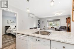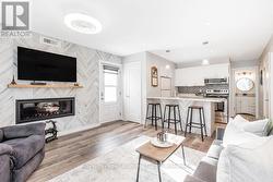 Spectacularly refinished 2-bedroom, 2-bath Glen II condo in the sought-after Living Stone Resort community in Collingwood. Updated from top to bottom, this inviting residence offers a perfect blend of comfort, style, and four-season living. The bright, open-concept kitchen and living area is ideal for entertaining or relaxing after a day on the slopes, featuring a stunning gas fireplace with an elegant feature wall. Extensive upgrades include new flooring throughout, updated lighting, new trim and doors, and beautifully refreshed kitchen and bathrooms. The spacious primary suite is a true retreat, offering a walkout to a large private balcony, a walk-through closet with custom built-in cabinetry, and a newly remodelled ensuite. The second bedroom is perfectly sized for guests, with a full bathroom conveniently located near-by. A full-size laundry room off the kitchen adds everyday practicality. Enjoy enhanced year-round comfort with new split AC/heat units in the main living area and primary bedroom. Located just minutes from ski hills, golf courses, scenic trails, Georgian Bay, and downtown Collingwood, this condo delivers exceptional access to everything the area has to offer. Optional membership to the Atoka Club provides access to a gym, pools, and tennis courts. Whether you're a weekend retreat seeker, investor, or first-time buyer, this beautifully updated condo is an outstanding opportunity to embrace the four-season lifestyle in Collingwood. (id:27)