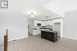 Freshly painted throughout with new flooring, this modern semi-detached home built in 2016 features an open-concept main floor where the kitchen, dining area, and living room flow seamlessly together, complete with a kitchen island that anchors the space. The home offers 2+1 bedrooms, two bathrooms, and 1,080 sq. ft. of thoughtfully designed living space. The primary bedroom is generously sized and features double closets and patio doors leading to its own private deck. The fully finished walkout basement adds exceptional versatility, making it ideal for guests, teens, or a home office setup. This level includes an additional bedroom, a 4-piece bathroom, a separate finished laundry room, and a utility room with ample storage. Natural Gas heating and central air conditioning provide year-round comfort. Located in a quiet, conforming neighbourhood, this well-maintained property offers solid value and low-maintenance living. (id:27)