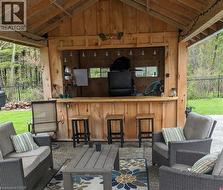 Turn-Key Luxury in the Country Welcome to an exceptional, sprawling ranch-style bungalow offering 2,150 sq. ft. of executive main-floor living. Situated on a private, beautifully treed lot in the desirable rural area of Dunnville, this home is loaded with high-end features and recent, significant upgrades, making it truly maintenance-free for years to come. This property is perfect for those seeking single-level living combined with resort-style outdoor amenities. Spacious Layout: Generous living spaces including 4 large bedrooms and a flexible den/office area. Cozy Warmth: Enjoy the ambiance and warmth provided by three strategically placed fireplaces (two gas, one gas store) throughout the main living areas. Recent Appliance Upgrades: The kitchen is ready for a chef with a New Refrigerator ('24), Electric Stove, and New Dishwasher ('25). Laundry features a New Washer ('23) and New Dryer ('25). Also includes a small chest freezer. Effortless Maintenance: All lights were changed to LED in 2020, and the furnace fan motor was replaced in '25. Finishing Touches: All curtains, light fixtures, and ceiling fans are included. Three windows were replaced in '22. Outdoor Oasis & Security Backyard Retreat: A fully fenced area centers around the large inground swimming pool (New Liner '24), complete with a modern filter system and heater (Pool Equipment '25). Tiki Zone: Entertain at the custom outdoor bar, featuring stools and tables (included). Generac Power: Never worry about power outages—the home is protected by a full GENERAC system (included). Hot Tub is included as is. Low-Maintenance Exterior: Features a durable Steel Roof (installed '20) with a leaf filter system on the eaves. Infrastructure & Mechanical Upgrades Water Quality'23Water filter system with UV protection Garage'25New Garage doors, lights, and Bluetooth openers HVAC'25New Furnace fan motor air exchange system Pool'24/'25New Pool Liner ('24), New Filter/Heater Equipment ('25) (id:7525)