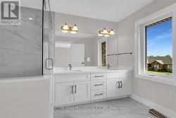 Executive 2 story with 5 bedrooms & 3 bathrooms on a premium lot (218' DEEP) is an ideal place for a family! This brick & stone 2596 sf family home with 2 car attached garage is ready to move in! Tastefully designed with high quality finishing this home features an open concept floor plan. Great room showcases the electric fireplace. Quartz counter tops in bright kitchen & bathrooms. 4pc ensuite with large glass corner shower, & 2 sinks and walk in closet off main bedroom. Convenient second floor laundry with cupboards. Impressive 9 ft ceilings, 8 ft doors, beautiful floors & gleaming tile. Desirable location in Highland Estate subdivision close to park, walking path, rec centre, shopping, library, splash pas, pickle ball court & public school with quick access to the 401. Move in and enjoy. Other new homes for sale on Leitch - ask agent for details. (id:27)