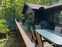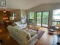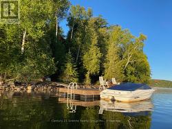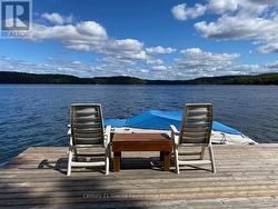 Incredible property on sought-after Miskwabi Lake! Rare point lot, with well over 300 feet of lake frontage (330' per assessment) and 1.3 acres for total privacy! Fantastic big lake view. Deep clean shoreline with a mix of rock and a hard sand beach for wading in -- perfect for kids. Bright and spacious 4-season cottage. The main floor has open-concept kitchen/living/dining areas. The living area features a vaulted ceiling, fireplace and walkout to deck facing the spectacular water view. There are 3 bedrooms plus a den, and 2 full bathrooms. Finished lower level with rec room, and walkout to sunroom facing the lake. Dual forced-air electric and oil-fired heating systems with on-demand hot water, plus electric baseboards and air conditioning. Detached 2-car garage with additional carport -- lots of storage for boats and toys! New stairs to waterfront, plus there's an easy trail leading down to the water, and nice level areas at the shoreline to play or relax. Enjoy sunset views from the dock and spectacular sunrise views from the cottage. Shoreline is owned. Miskwabi Lake is part of a 2-lake chain renowned for miles of boating, clear waters, and lake trout fishing. Easy access by year round Municipal road, approximately 15 minutes to Haliburton village for shopping and services. (id:27)