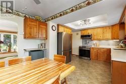 Discover the perfect blend of country charm and urban convenience at 146 Queensville Sideroad in Holland Landing. Offering over 1,500 sq. ft. of finished living space, this inviting sidesplit home sits on a generous lot backing onto Greenbelt-protected greenspace, providing privacy, open views, and parking for up to nine vehicles across two driveways. With the East Gwillimbury GO Station, the new Healthy and Active Living Plaza, Newmarket, and Bradford just minutes away, it's ideal for families seeking quick access to both work and play. The main level features three spacious bedrooms, an updated bathroom, and a country-inspired kitchen complete with 2024 Samsung appliances, a 2025 Bosch Silence Plus dishwasher, and tasteful upgrades including a new sink, backsplash, and lighting. The family room with 9-ft ceilings serves as the heart of the home, anchored by a stunning stone fireplace with Napoleon insert and a custom mantle. Upstairs, a private retreat above the garage with a skylight and large front window offers the perfect guest suite, teen hideaway, or office. The bright lower level with oversized windows, a fourth bedroom, and a renovated bathroom completed in 2021 provides flexibility as a rec room, entertainment area, or extended family space. Its layout also offers potential for future conversion into a legal secondary suite, subject to municipal approval. Storage is never an issue here. Enjoy a large garage with workbench and attached shed, plus a secondary driveway perfect for parking a work truck or travel trailer. Additional updates include new garage doors, siding, concrete entry, septic system, AC, roof, and oil tank, making this home truly move-in ready. Step outside to your private backyard oasis overlooking fields and forest, with easy access to trails, marinas, and Lake Simcoe. This home offers more than a place to live, it's a lifestyle of space, comfort, and connection to nature. (id:27)