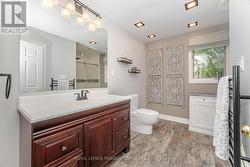 Welcome to Holland Landing, East Gwillimbury's Hidden Gem! Nestled on a quiet crescent in a peaceful, family- village known for its strong sense of community, abundant parks, excellent schools, and the picturesque East Holland River with surrounding trails. This beautifully updated 4-bedroom, 3-bath, 2-storey home is move-in ready. Stepping into this beautiful home you are greeted by a gorgeous foyer with new laminate floors and an updated staircases with wrought-iron spindles. The bright and spacious combined living/dining room perfect for entertaining. As the weather gets cooler, snuggle up in the cozy family room in front of the wood burning fireplace. The main floor also features a renovated powder room and laundry for modern convenience. The eat-in kitchen boasts brand-new stainless-steel appliances, a 5-stage reverse-osmosis filter and new sliding doors to a huge private deck perfect for gatherings, lounging, and evenings by the fire pit. Upstairs, engineered hardwood floors lead to a large primary suite with walk-in closet and 3-piece ensuite, plus three additional bedrooms. The fully renovated basement is a standout feature complete with 6" wide-plank laminate floors, a walkout to the backyard, wet bar, bathroom rough-in with working toilet, and replaced sliders. It also includes a fully equipped home gym, and all gym equipment is included with the sale, making it an ideal space for both fitness and relaxation. Notable updates include a 2025 roof, new garage door and opener, new front door, owned hot water tank, carbon filters, and whole-home water filtration system, ensuring comfort and peace of mind. Don't miss this opportunity to own a meticulously cared-for home in one of East Gwillimbury's most desirable communities! (id:27)