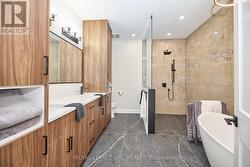 Amazing home in Excellent location near the QEW, Shopping and US border. 3 + 2 bedroom Bungalow finished top to bottom. This home has MANY upgrades you will not find in homes at this price point. Lifetime diamond shape metal roof, ICF foundation, 3 car insulated garage, separate walk out to basement, huge covered rear deck. 9 ft ceilings on main floor, 10 ft tray ceilings in LR & DR. 9 ft basement height. Engineered hardwood throughout main level. 46 inch linear gas fireplace, Quartz Double waterfall edge on oversized kitchen island, glass wine display, 12 ft double sliding patio door to covered porch. 4 zone sound system, 7 camera security system, fully finished basement with 2 additional bedrooms, 5 piece bath and huge rec room w/ gas fireplace. Primary ensuite and basement bathroom have heated flooring. Outdoor wooden Sauna is included. 4 years remaining on Tarion warranty. Quartz countertops in all bathrooms. Newly finished concrete/aggregate driveway. Beautiful home, you will NOT find another like this one. **Listing agent is related to sellers. Purchase price shall include a 10.01 m x 12.19 m parcel at the rear of property. Swim Spa is negotiable. (id:27)