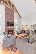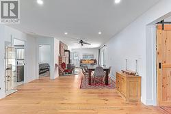 Spectacular year-round family retreat in the heart of Eugenia Village. Beautifully renovated in 2019, this 2,100+ sq ft modern home checks all the boxes with 5 bedrooms, 3 full bathrooms and a best-in-class open-concept layout built for entertaining. The showpiece kitchen includes an extra-large island and flows into a bright living area featuring a soaring 2-storey brick fireplace with a frameless Town & Country gas insert. White oak plank flooring throughout the main level adds a warm, contemporary feel. Designed for large groups, the home offers a private lower-level suite, a generous principal bedroom, and excellent indoor/outdoor usability. Step outside to relax in the 6-person hot tub, unwind around 2 firepits, or enjoy the wooded lot and charming bunkie with hydro. Just 7 minutes to Beaver Valley Ski Club, and a short walk to Lake Eugenia's crystal-clear waters for boating, paddleboarding, swimming and fishing. Minutes to the Bruce Trail, Eugenia Falls Conservation Area. Exceptional value for a turnkey getaway, full-time home, or income-producing investment in one of Ontario's most sought-after four-season destinations. (id:27)