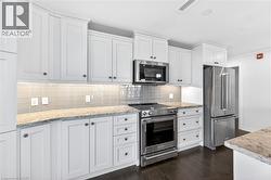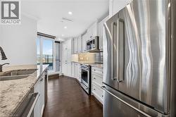 LUXURIOUS APARTMENT CONDO LOCATED IN MODERN BUILDING IN GRIMSBY ON THE LAKE!! Spacious corner unit offering approximately 1500 sqft with floor to ceiling, wall to wall windows, providing spectacular views of the lake and Toronto skyline. Open concept design with spacious foyer, hardwood floors, crown mouldings and recessed lighting. 3 underground parking spaces. Gourmet kitchen, large island, abundant cabinetry, granite counters and stainless-steel appliances. Enjoy the two separate balconies plus the expansive terrace offering a great space for relaxation and taking in the Lake views. The elegant primary bedroom suite has 2 walk-in closets, luxurious ensuite bath with jetted tub and glass doors to the terrace. Second bedroom with full ensuite bath, walk-in closet. OTHER FEATURES INCLUDE: Newer secured building, 2.5 baths with granite counters, in-suite laundry with washer & dryer, central air, custom window treatments, hardwood floors, wine cooler, kitchen appliances. Condo amenities include party room, roof top lounge, workout facilities, meeting room, car wash station, private locker, ample visitor parking. Quality finishes throughout this unit. Steps to waterfront trail, beach, fine dining and shopping and less than 10 minutes to wineries. Carefree living at its best awaits you. A must see! (id:27)