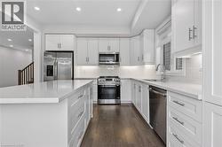 Welcome to your desired home nestled in the beautiful Niagara Escarpment on quiet street in a picturesque and vibrant Town of Grimsby. Newly built Branthaven Home with 5 Beds & 4 Baths packed with lots of upgrades. Main floor features Living/Dining room open to Gourmet kitchen with a huge island, quartz counter tops, tiled backsplash with valence lighting, stainless steel appliances and walk out to a fully fenced backyard, modern design media/fireplace wall, huge mud room with access to garage, basement and lots of LED pot lights(switchable color temperatures) and Cascade rolling window shades all through out. Upper Level features a grand primary bedroom with large walk in closet & bright ensuite, 2nd bedroom with walk in closet, 2 more large bedrooms with a shared 4 pc bath, laundry room and a linen closet carpet free. Lastly, fully finished basement by the builder featuring Great room with wet bar, large bedroom, 4 pc bath, a small den, cold storage room and full laundry in furnace room which can be used as in-law suite. Double wide garage with asphalt drive way with NO SIDEWALK to park 4 medium sized cars. Located conveniently in a community safe neighborhood with quick access to QEW, walk to new Secondary School & YMCA, close to wineries and amenities. One of the owners is a licensed realtor. (id:7525)