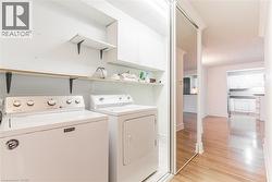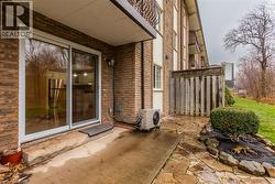 BEST LOCATION IN THE BUILDING! Discover the perfect blend of tranquility and convenience in this beautifully maintained main-floor 2-bedroom condo, ideally positioned with serene views of mature trees, a gentle creek, and your own private garden patio — perfect for morning coffee or an evening unwind. Peaceful, picturesque, and wonderfully quiet — a rare find in the heart of Grimsby. Enjoy the ease of having your dedicated parking spot just steps from your patio doors, making everyday living effortlessly simple. Bright interior with open-concept living, dining, and kitchen featuring laminate flooring throughout and updated cabinets. All appliances included. Living Room opens to the tranquil patio. In-suite laundry with washer/dryer. Updated 4-pc bath. Brand new A/C. Spacious primary bedroom plus versatile 2nd bedroom or office. Move-in ready with no disappointments. Maintenance fees include: Exterior maintenance, water, heat, hydro, basic cable TV, high-speed internet and parking. (id:27)