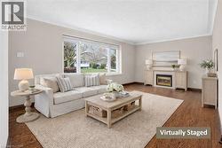 ADAPTIVE / ATTRACTIVE LIVING...SPACIOUS BUNGALOW w/AWESOME CURB APPEAL ~ On a QUIET SOUGHT AFTER STREET in Grimsby sits 5 Brentwood Road; delivering thoughtful design, including “accessibility” features & flexible living spaces that adapt to every stage of life. With a classic stucco & stone exterior, this FULLY FINISHED 2+1 bedroom, 2 bath bungalow immediately stands out. The MAIN LEVEL offers a warm, refined atmosphere anchored by a bright living room featuring a gas fireplace, hardwood flooring w/wood baseboards & crown moulding. The kitchen is both practical & inviting w/generous cabinetry, gas stove, skylight & convenient MF laundry access just off the kitchen, providing inside entry to garage. The primary bedroom is a comfortable retreat w/hardwood floors, California shutters, two closets & ensuite privilege to a wheelchair-accessible 3-pc bath complete w/WI shower. A 2nd bedroom completes the main floor. A true “chair lift” on the staircase adds ease of movement between levels, enhancing day-to-day comfort. Finished lower level offers prime IN-LAW SUITE capability, featuring a kitchenette, spacious rec area, bedRm, 4-pc bath, and a family room w/updated flooring & French doors - ideal for extended family, guests, or flexible living arrangements. ACCESSIBILITY IS SEAMLESSLY INTEGRATED THROUGHOUT…including wheelchair access to the yard, deck & driveway. XL DOUBLE garage is a standout feature w/two doors, dual access points, a wheelchair lift connecting to MF laundry & a rear man door for added convenience. XL DOUBLE drive allows enough space for 6-8 vehicles, and the spacious side yard further enhances outdoor enjoyment & usability. A BEAUTIFUL home that blends comfort, function, and adaptability, 5 Brentwood Road is a rare opportunity in an established Grimsby neighbourhood. Great central location just a short stroll to shopping, downtown, schools, parks & HWY access. Virtual staging used to highlight potential. CLICK ON MULTIMEDIA for virtual tour & More. (id:27)