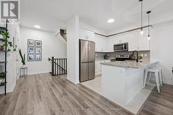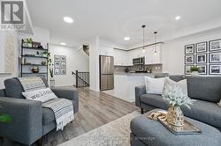 AFFORDABLE 2 BEDROOM FREEHOLD TOWNHOME IN SOUTH GUELPH: This modern freehold townhome is tucked into a quiet South End enclave and offers an easy, low-maintenance lifestyle in a fantastic location. Built in 2019 this home is bright, functional, and move-in ready.The open-concept main level is filled with natural light and features a stylish kitchen with quartz countertops, stainless steel appliances, and a breakfast bar that flows into the living and dining areas. Sliding doors lead to a covered balcony - a great spot for summer BBQs or relaxing at the end of the day.Upstairs, you'll find two well-sized bedrooms, including a primary bedroom with a walk-in closet and private ensuite, plus a second full bathroom and convenient upper-level laundry. SMART home features allow you to control lighting, the garage door, and HVAC with ease. Located close to trails, parks, schools, shopping and accessible to the University of Guelph via transit, this South End location makes everyday living simple. A great opportunity to step into a newer home with modern finishes! Updates include new front door (2025) and washer/dryer (2024) (id:27)