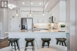 Set high above Guelph's vibrant south-end this suite showcases impressive 941sqft, 1-bdrm + den where modern elegance meets breathtaking views! Bathed in natural light this unit captures sweeping vistas of treetops & city skyline offering serene backdrop for everyday living. At this price point it offers exceptional value per sqft in one of Guelph's desirable neighbourhoods. Designed W/upscale finishes this modern suite exudes comfort & sophistication. Soaring ceilings & wide-plank engineered hardwood create airy ambience that flows seamlessly through the open-concept living space. Relax by fireplace in living room or step onto private balcony-ideal spot to sip morning coffee or unwind & take in city views. Gourmet kitchen W/white cabinetry, quartz counters, backsplash & S/S appliances. Oversized breakfast bar W/pendant lighting invites casual dining & entertaining. Primary bdrm W/floor-to-ceiling windows deliver breathtaking vistas. Luxurious 4pc bath W/oversized vanity, quartz counters & soaker tub surrounded by marble-inspired tile. French doors reveal versatile den-ideal as home office, guest room or creative studio. W/I closet in entryway & pantry off dining area keep everything organized & within reach. Live, work & play without leaving home! Residents enjoy amenities: state-of-the-art fitness, golf simulator lounge W/bar, social spaces W/kitchen, billiards, lounge seating & outdoor terrace. Underground parking for yr-round convenience! For parents of U of G students this suite is a smart alternative to renting. Invest in an appreciating asset 10-min from campus W/direct bus access. 24/7 on-site mgmt & controlled entry, you'll have peace of mind knowing your child is living safely while your investment grows in value. Steps to Pergola Commons for access to groceries, restaurants & shops. Quick access to 401 for commuters. Whether you're picking up produce, meeting friends for dinner or exploring parks & trails, this neighbourhood has it all! (id:27)