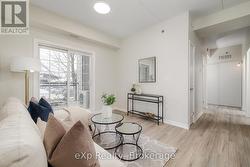 Welcome to Grandview on Gordon! This first-floor, 751 sqft unit offers a bright & functional layout in Guelph's South End, with 2 Bedrooms, 1 Den, & a Full Bathroom. Carpet-free interior features brand-new luxury vinyl plank flooring (2026), 9ft ceilings & fresh paint throughout. The kitchen features black quartz counters, a full-size dishwasher & a convenient breakfast bar opening to the living area. A standout feature is the versatile den with its own closet, ideal for an office, extra storage, reading nook, or guest space. Updated with bright, new light fixtures throughout, this unit is truly move-in ready. Connect with the outdoors on the spacious private balcony. Benefit from in-suite stacked laundry, one secure underground parking space & a dedicated storage locker. Ideally located on a direct bus route, minutes from the University of Guelph, shopping & entertainment in the heart of the South End, & easy 401 access. Move-in ready & perfect for low-maintenance living! (id:27)