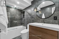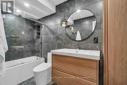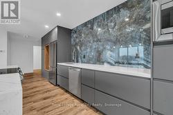 Modern living at 511-19 Woodlawn Rd E! This beautifully renovated 3-bedroom condo is perfectly situated overlooking Riverside Park, blending natural tranquility with the convenience of nearby amenities and transit routes. The building offers a fantastic community feel with on-site amenities like a tennis/pickle ball court and a sparkling pool, perfect for relaxation and recreation. Step into Unit 511, where modern design meets exceptional quality. Renovated from top to bottom, this condo has been carefully crafted! You'll find sleek, consistent flooring throughout and custom modern radiator covers. The kitchen is a standout, featuring a waterfall island with ample seating and storage, a built-in Bosch oven, and a sleek rising vent. The feature wall adds an eye-catching, contemporary touch. The primary bedroom offers stunning park views, a 2-piece ensuite, and a large closet. Two additional bedrooms make the unit ideal for families or those working from home. The laundry room includes a stackable washer/dryer, sink, and built-in storage. The main bathroom is designed with floor-to-ceiling tiles, a glass-enclosed shower/tub, heated towel rack, and storage. Enjoy a comfortable climate year-round with limited exposure to direct sun during the day, yet plenty of natural light in the mornings and evenings. The upgraded balcony with privacy screens and mesh keeps bugs out, offering a peaceful outdoor retreat. With heat, hydro, and water included in condo fees, budgeting is easy. This one-of-a-kind unit stands out, and the photos speak for themselves! (id:27)