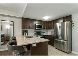 2 PARKING SPACES! Welcome to the best unit on the market at this price. The benefit of being on the ground floor corner unit is no elevator hassle for groceries, dog walking, whatever it is... this makes life more convenient. With 2 Bedrooms plus a Den/Dinette there is lots of space. Some interior features include Laminate plank and Ceramic flooring, Granite Counters in the kitchen and bath, Stainless Steel LG Appliances, Bright Bedrooms with large windows plus each room features built-in closet shelving. In-suite Laundry with a top of the line LG Stacked Washer and Dryer. The well maintained building, grounds and park are close to a few fantastic golf courses, lots of restaurants, pubs, shopping, library, and more! This location is also favoured by people that commute with easy access to the 401 and University of Guelph. Parks and well maintained trails that go for miles surround this desirable area.