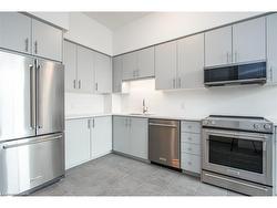 Discover urban living at this brand new one-bedroom, one-bathroom condo at Anthem at the metalworks with heat, water and Internet included, located at 1303-93 Arthur Street South in downtown Guelph. This thoughtfully designed unit features impressive 10-foot ceilings (exclusive to 13th and 14th floors), California-style ceiling treatment, contemporary 6-inch baseboards, and modern decora switches. The spacious layout maximizes every square foot for optimal comfort. The kitchen showcases premium stainless steel appliances including refrigerator with ice maker and bottom-mount freezer, plus 30-inch slide-in electric range with microwave hood. Canadian-made cabinetry features soft-close mechanisms, while quartz countertops provide durability and elegance. In-suite energy-efficient stacked laundry adds practical convenience. The four-piece bathroom features matching Canadian cabinetry and quartz counters, maintaining cohesive design throughout. Smart home technology includes programmable thermostat, security system, and amenities booking platform. Building amenities include first-floor piano lounge, co-working studio, comprehensive fitness club with cycle room, and pet spa. Third-floor social club and terrace provide entertaining spaces, while the seventh-floor sunrise deck offers breathtaking views, Indoor bike racks in secure garage. Wi-fi connectivity throughout lobby and indoor amenity areas keeps you connected. This premium development offers unparalleled convenience with Guelph Central Station steps away, making commutes effortless. Nature enthusiasts will appreciate nearby Priory Park, while grocery shopping is convenient with natural food markets in the area. Enjoy access to public river walk, River Square and Mill Square public amenity spaces. This exceptional unit includes one underground parking space. Anthem at the metalworks represents premium development standards that consistently impress, making this your ideal urban sanctuary.