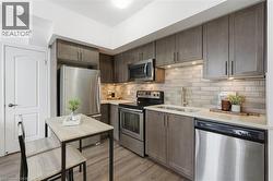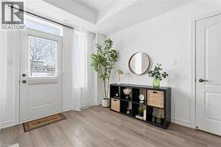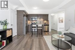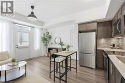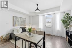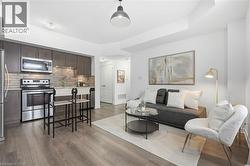 Modern ground-level, end-unit stacked townhome offering stair-free living, low condo fees, and exceptional value in one of Guelph’s fastest-growing neighbourhoods. This 1-bedroom, 1-bath home is ideal for first-time buyers and downsizers seeking a stylish condo alternative with a garage, outdoor living space, and excellent storage. Recently painted, this open-concept home features a bright living and dining area with upgraded laminate flooring and abundant natural light. The modern kitchen showcases upgraded Barzotti cabinetry, quartz countertops, subway tile backsplash, and stainless steel appliances. Thoughtful design sets this home apart from a typical apartment, with a spacious pantry and two hidden storage areas that maximize functionality. The bedroom features an oversized window that fills the space with light. The modern 4-piece bathroom offers granite counters and a deep soaker tub. Enjoy in-suite laundry, inside-entry from the attached garage, and two parking spaces—a rare find at this price point. Outside, a large fully fenced terrace with morning sun and afternoon shade is perfect for relaxing or low-maintenance outdoor living. Located just 10 minutes from the University of Guelph and close to parks, trails, shopping, and major commuter routes, this home delivers both convenience and lifestyle. With a new development proposed across the street, you’re not just buying a home today—you’re investing in the future of a growing community. A perfect opportunity for first-time buyers and downsizers seeking smart, low-maintenance living. (id:27)