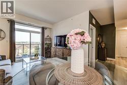 $4000 Marketing Incentive credit to Buyer at Closing. TWO Parking spots and a locker. Welcome to this beautifully updated 2-bedroom condominium offering style, comfort, and convenience. Top floor. Bright and tastefully decorated throughout, this move-in-ready unit features fresh paint, upgraded lighting, and new luxury vinyl plank flooring that adds a modern touch. The open-concept living and dining area is filled with natural light, while the custom accent wall in the primary bedroom adds a touch of designer flair. Step out onto a balcony straight from the pages of Homes & Gardens — a beautifully designed outdoor retreat perfect for quiet morning coffees or unwinding with a glass of wine at sunset. Enjoy fantastic building amenities including a well-equipped fitness room, an inviting event/party room, and plenty of visitor parking for your guests. Conveniently located close to shopping, transit, and everyday essentials—this is condo living at its best! (id:27)