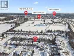Located on a quiet crescent, this four-bedroom home with an inground pool is in search of its next family! Centrally located adjacent to Old University with easy highway access, yet surrounded by beautiful parks and walking trails along the river that lead right to downtown Guelph. Built by Thomasfield Homes, the front has great curb-appeal with its double car garage and stamped asphalt driveway. The backyard is pie shaped and has a 32x17 ft inground pool with concrete and interlock surround, a hot tub, plus ample grass for the kids or pets to play. The main floor has an updated kitchen and appliances including gas stove (2017), formal living room and dining room with hardwood flooring, a main level family room with gas fireplace, 2-piece bathroom plus a very convenient mudroom from the garage that also has hookups ready for main level laundry should you desire. Upstairs has four bedrooms and two bathrooms that were both updated in 2020. If you need more space, the basement is also finished with a large family room. Other notable updates: Roof and eaves (2024), most windows, flooring and carpet (2017), pool equipment and liner (2014), hot tub, patio door, gas fireplace (2013), furnace and AC (2009). You won't find many four-bedroom homes with inground pools in this price point, schedule a private viewing today! (id:27)