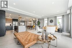 Welcome to 43 Everton Drive, the award-winning Fusion Homes model residence at The Glade—a showcase of refined design, premium finishes, and superior craftsmanship. Perfectly positioned on a rare premium walkout lot in Guelph’s sought-after East End, this exceptional detached home delivers an elevated living experience at every turn. The open-concept main level is thoughtfully designed for both everyday living and entertaining, featuring wide-plank flooring, expansive windows for abundant natural light, and a chef-inspired kitchen highlighted by custom two-tone cabinetry, quartz waterfall island, integrated seating, and curated designer selections throughout. Upstairs, a spacious and versatile family lounge with private balcony access provides a secondary living space, while the primary suite offers a true retreat with a walk-in closet and a spa-inspired ensuite finished to Fusion’s exacting standards. Two additional generously sized bedrooms, a full bath, and an upgraded laundry room complete the upper level. The fully finished walkout basement extends the home’s livability with exceptional flexibility—ideal for a recreation room, home gym, media space, or future in-law suite potential with separate entrance. Move-in ready and meticulously appointed, this one-of-a-kind residence reflects Fusion Homes’ commitment to quality, innovation, and thoughtful design, all within a vibrant, family-friendly community close to parks, schools, and everyday conveniences. (id:27)