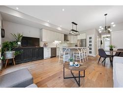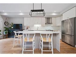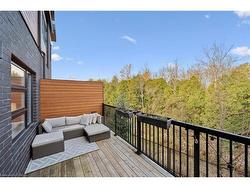 Welcome to #83–60 Arkell Road, an exceptional modern townhome tucked within an exclusive, private enclave of just a handful of homes. Backing onto a dense forest, this home offers rare privacy and a natural backdrop that feels miles away from city life—yet it’s ideally located in Guelph’s desirable South End, close to top-rated schools, public transit, and every amenity imaginable. With over 2,400 sq ft of living space, including a walk-out lower level, this home features 3 bedrooms and 3.5 bathrooms, plus a den/home office on the second floor. This unit is highly upgraded, with luxury vinyl plank flooring, LED pot lights, and stone surfaces throughout. The open-concept main floor is perfect for entertaining, with a spacious dining and living area that walks out to a private deck overlooking the forest. The chef-inspired kitchen features full-height cabinetry, high-end stainless steel appliances, and a quartz waterfall island that anchors the space. The upper landing includes a convenient laundry closet and a flex space that's ideal for an office, workout area, or reading nook. The primary suite enjoys a dedicated ensuite with a glass-enclosed shower and rain shower head, while two additional bedrooms share a stylish 4-piece bathroom. The finished walk-out basement provides even more living space with a full bathroom and a large recreation room that opens to a covered patio surrounded by nature. The cherry on top? This unit comes with a rare third parking space! This is the ideal home for a stylish couple, modern family, or investor who is looking to attract a high quality tenant.