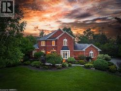 Welcome to this ULTRA-PRIVATE SECRET GARDEN - A Rare Executive Country Estate Property backing onto Blue Springs Golf Club (Home of PGA Canada) w/ the most stunning yard that will rival any luxury resort. This prestigious all-brick home features open concept living + fully finished basement. It is nestled on a stunning 1.38-ACRE LOT (including a beautiful side lot for added privacy) in a quiet enclave of distinguished executive homes. There is a sense of space as you enter the grand foyer w/ its 9' ceilings and curved staircase. The heart of this home is the gourmet EI kitchen which overlooks the WO to the stunning yard and living room w/ vaulted ceiling, fireplace and additional WO to the yard. There is a main level office located off the front entrance and convenient main level laundry w/ tub. The upper floor has 3 generous bedrooms (there were 4 - can easily convert back), one being the primary bedroom with his/her closets and 5-pc ensuite. The basement features an over-sized 4th bedroom, RI for bathroom, a 2nd office, gym, family room and workshop. The dream yard will take your breath away and includes a pavilion for dining al fresco, heated pool, koi pond w/ waterfall, golf-themed bar, screened-in pergola, extensive hardscaping (2000+ SF of flagstone installed on 3 of concrete for stability) and professional low-maintenance landscaping - the ultimate space for entertaining. Additional features: 3-car garage, parking for 10+ in the driveway, garage entry to home, replaced exterior doors, no rentals, energy efficient gas pool heater (2018), pool liner and cover (2025), furnace (2017), well pump (2024); water softener, UV system, HWT all owned; all windows replaced and home re-insulated, extensive UG sprinklers (including side lot), 12 x 16 double-sided pine Mennonite-built shed. Peaceful location close to golf, trails, lake, 15 minutes to 401. This is your opportunity to finally make a luxury move to the country ... let's get you in there for summer! (id:27)