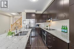 Live in a bright and stylish 3-bedroom, 3-bath, 3-storey townhome in Weaver Mill, one of Georgetown's most desirable and friendly neighbourhoods. The main living area features a combined living and dining room that feels open and inviting, ideal for both everyday living and entertaining. The kitchen is thoughtfully designed with a centre island with seating, granite countertops, ceramic backsplash, double sink, and a dedicated reverse osmosis water faucet, while the sun-filled breakfast room walks out to a spacious balcony, perfect for outdoor dining or summer barbecues. Upstairs, the primary bedroom offers a walk-in closet and a 4-piece ensuite, with two additional well-sized bedrooms and a second 4-piece bathroom. The ground floor adds exceptional functionality with tile flooring, two closets, and a fully dry-walled laundry room featuring a sink, windows, shelving, and abundant storage, along with a convenient direct interior access from the garage. Enjoy low-maintenance, worry-free living with POTL fees that include visitor parking, snow removal, landscaping of common elements, two parkettes, and garbage removal. All of this is just minutes from Downtown Georgetown, with shops, restaurants, cafés, schools, parks, the hospital, library, and GO Train station close by. Extras: New Light Fixtures (2026). Rough-in Central Vacuum. (id:27)
