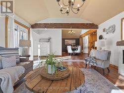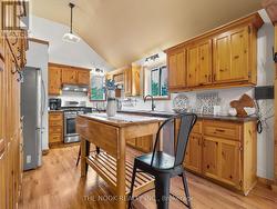Exuding cottage country charm, this home perfectly captures the essence of relaxed, small-town living just steps from Rice Lake and minutes from the Ganaraska Forest. Surrounded by scenic landscapes and friendly neighbours, it offers year-round adventure with endless opportunities for snowmobiling, ATVing, hiking, fishing, and ice fishing possibilities directly from the property to trails and lake! The property blends rustic character with thoughtful updates, including a roof replaced by Oak Hill Roofing in 2021, and a spacious backyard oasis featuring a hot tub and large deck ideal for summer barbecues or evening stargazing. Inside, the upper level welcomes you with warmth and character. The living room features a vaulted ceiling, rich wood accents, and a cozy electric fireplace, flowing naturally into a charming dining area framed by exposed beams. The kitchen combines style and functionality with abundant solid wood cabinetry, stainless steel appliances, and a convenient island-perfect for meal prep or casual dining. The primary bedroom offers a serene escape, while the second bedroom provides flexibility for guests or a home office. A fully renovated 4-piece bathroom completes the level with modern finishes and natural wood accents that tie the home's inviting aesthetic together. The lower level extends the home's comfort and versatility with a bright walkout foyer and a spacious rec room that's ideal for family gatherings or relaxing by the fire. A bonus bedroom adds space for guests or hobbies, while the laundry and utility rooms keep daily life organized. Ample storage throughout ensures both practicality and ease, making this home the perfect blend of country charm, comfort, and functionality-tailor-made for those who value peaceful living with adventure at their doorstep. (id:27)