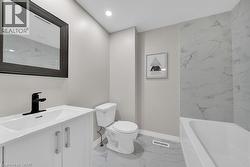 All updated and in move in condition with a flexible closing. Plenty of square footage (942)above grade plus basement. Updates include a brand new bathroom, stripped to cinder blocks. New Tub, sink, toilet floor and walls. Unit has 1 parking spot with an option for another for a small fee.…New Led pot lights installed, exhaust fan. New tile on floor and tub surround including tub, and fixtures. All new flooring on the second floor, painted walls, new Led light fixtures were installed. No more lightbulbs required, new Carpet installed down the stairs. On the main floor, LED fixtures . Freshly painted living room. The kitchen has brand new cabinets, flooring, sink, faucet counters. Brand new pantry ,French door fridge, new stove, dishwasher, and over the stove microwave, new led lights installed in kitchen, new plug installed for the stove . Basement is painted but can be finished. Fairly new washer, dryer not new. New sink tub was added in the basement. No Disappointments here!! (id:27)