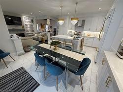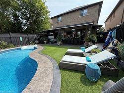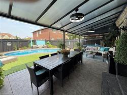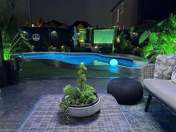 Stunning Home on a Prime West Mountain Court – A True Oasis!Welcome to this exceptional property nestled on a quiet court in the highly sought-afterWest Mountain area. From the moment you arrive, you’re greeted by a grand double-doorentry, soaring 2-storey foyer, elegant chandelier, oak staircase with wrought ironspindles, and gleaming 24”x24” tiles.The main level features a seamless open-concept layout with a spacious dining and familyroom adorned by a modern fireplace. The gourmet kitchen is a showstopper—complete withbuilt-in stainless-steel appliances presently professionally wrapped in white vinyl(including a water line for the fridge), gas stovetop, crown molding, quartz countertopsand backsplash, oversized island, pot lights. Sliding doors lead to a breathtaking,fully fenced backyard that radiates a Caribbean resort-style vibe.Upstairs, you’ll find a luxurious primary suite that includes a walk-in closet and aspa-like ensuite with double vanity, soaker tub, and separate shower. Along with threegenerously sized bedrooms—two with walk-in closets and a completely renovated five piecebathroom. This home is completely carpet-free for easy maintenance and a modern feel.The beautifully finished in-law suite in the basement offers its own eat-in kitchenette,stylish 4-piece bath, two bedrooms, and a cozy family room with fireplace—perfect forextended family or rental potential.The exterior is finished in an elegant combination of stucco, stone, and brick. Stepoutside to your personal paradise: an inground heated saltwater pool, hot tub, stainlesssteel outdoor kitchen with gas BBQ under a covered patio, space for a 12-seat diningtable, cozy lounge area, and a dedicated gas fire pit zone for evening gatherings.Room Sizes are Approximate. Realtor is one of the Sellers.