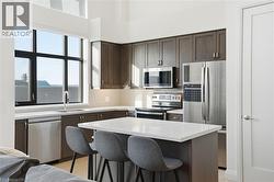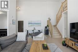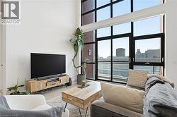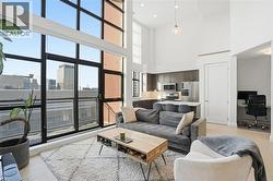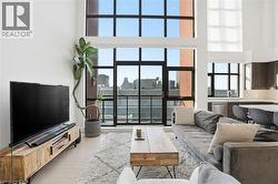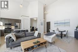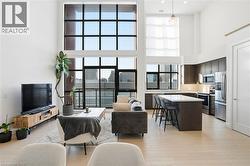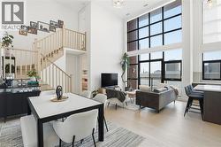 Step into elevated city living in this rare two-storey 2-bedroom, 2-bathroom, plus den lower penthouse at the iconic Residences of Royal Connaught. This 1,267 sq ft west-facing suite features dramatic 18-foot ceilings, expansive floor-to-ceiling windows, and breathtaking, unobstructed views of the Escarpment, Gore Park, and Hamilton Harbour. The main level offers a bright open-concept living space with a den, laundry, and a spacious primary bedroom complete with walk-in closet and ensuite privileges, delivering true one-floor convenience. Upstairs, the second bedroom boasts its own 4-piece ensuite, ideal for guests or family. Thoughtful upgrades include quartz countertops, under-cabinet lighting, engineered hardwood floors, and custom motorized blinds. Enjoy your private balcony, ample storage throughout, and access to premium amenities including a rooftop terrace with fireplace and BBQs, party and media rooms, and a fully equipped gym. Starbucks is conveniently located between the two lobbies, just an elevator ride away. Unbeatable location steps to the GO Station, James Street North, King William Street, the Art Gallery of Hamilton, the Farmers’ Market, and more. Includes underground parking and a storage locker located right next to the unit. Luxe, location, and lifestyle all in one. (id:27)
