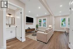 The home you’ve been waiting for—complete with a FULL in-law suite and private side-door entry. Offering 4 bedrooms plus a den, 2.5 brand-new bathrooms, 2 kitchens, 2 laundry rooms, this move-in-ready property truly checks every box. The bright and open main floor features a custom kitchen with quartz countertops, undermount sink, stylish backsplash, crown molding, and pot lights, flowing seamlessly into the sun-filled living room. You’ll also find two main-floor bedrooms, a modern 4-piece bath, convenient laundry, and walkout access to a fully fenced, private backyard perfect for enjoying single-level living. Upstairs offers a spacious bedroom, 2-piece bath, and a versatile den ideal for a home office, playroom, or flex space. The fully finished basement is in-law suite ready, featuring its own private side entrance, an open-concept living area, custom kitchen with quartz countertops and pot lights, a bedroom, 3-piece bath, and separate laundry—ideal for extended family, a growing teen, or potential income. Extensively updated throughout with all-new flooring, two new kitchens, 2.5 new bathrooms, lighting, doors, trim, and a new driveway, plus much more. Situated in a highly desirable neighborhood, within walking distance to parks, schools, trails, and everyday amenities. Just minutes to Downtown, QEW, 403, Red Hill, and The LINC (id:27)