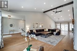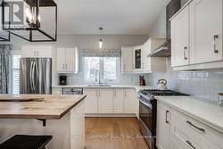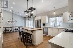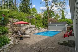 SURPRISINGLY SPACIOUS! This exceptional custom-built bungalow offers nearly 3,400 square feet of beautifully finished living space, thoughtfully designed for both everyday comfort and elegant entertaining. Ideally located in the heart of Dundas, it delivers the rare balance of privacy and walkable convenience-steps to scenic trails, excellent schools, the arena, community centre, and the vibrant downtown core with its boutique shops and diverse dining options. Inside, vaulted ceilings, engineered hardwood flooring, and sun-drenched open-concept living spaces set an inviting tone. The living room is anchored by a striking gas fireplace with a brick surround and rustic wood mantle, while the dining area opens effortlessly to the backyard, creating a seamless indoor-outdoor flow. The chef-inspired kitchen impresses with stainless steel appliances, a gas range, quartz countertops, ample cabinetry, and a statement island with butcher block breakfast bar. The primary suite is a true sanctuary, featuring a spa-like 4-piece ensuite, walk-in closet, and sliding doors that lead directly to the backyard. Two additional bedrooms, a stylish 4-piece bathroom, main-floor laundry, and interior access to the oversized double garage complete the main level. Downstairs, the fully finished lower level extends your living space with a generous L-shaped recreation room with inset fireplace, versatile 4th bedroom or office space, 3-piece bath, and excellent storage. Outside, discover a private backyard oasis with a two-tiered layout, including an inground pool, large workshop/shed, and a serene wooded backdrop, plus a relaxing upper pergola to enjoy the cottage-like atmosphere. This is more than a home-it's an elevated family-friendly Dundas lifestyle waiting to be enjoyed. (id:27)