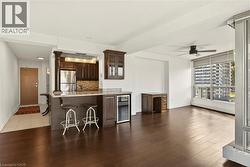 Exceptional views from every window! Discover this stunning 2-bedroom, 1.5-bath, 18th floor condominium apartment with balcony, offering spectacular southwest views overlooking the escarpment and city skyline — a true million-dollar vista. The over 1100 square feet of living space includes an updated kitchen featuring granite countertops, stainless-steel appliances, and a breakfast bar, perfect for casual meals at home. Bamboo flooring throughout adds warmth and style to the spacious interior. Conveniently located within walking distance to St. Joseph's Hospital and close to public transit, mountain access roads and the Hunter Street GO Centre, this well-maintained building offers both comfort and practicality. The building boasts numerous remarkable amenities including a gym, swimming pool, squash court, games room, and party room. Recent renovations have transformed the common areas with a new lobby, refreshed hallways, and modernized unit doors, giving the property a contemporary look that feels like a brand-new building. Underground parking is available for an additional fee. Don't miss this exceptional opportunity to own a move-in-ready unit with breathtaking views and premium amenities. Schedule your showing today! (id:27)