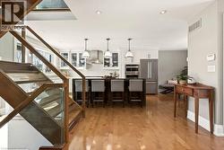 From the moment you step inside, it’s clear this Ainslie Wood home is something special. Completely gutted and thoughtfully rebuilt, the property was reimagined from the ground up with new wiring, plumbing, insulation, waterproofing, roofline, and interior layout, delivering a level of quality rarely found in the neighbourhood. The bright, open-concept design is complemented by high-end finishes throughout, anchored by a stunning kitchen with stainless steel appliances, oversized island, and seamless flow for everyday living and entertaining. The spacious living area is highlighted by a cozy marble-backed gas fireplace. The second level features an impressive primary retreat with its own open living space, walk-in closet, laundry, and flexible room ideal as a home office or additional bedroom. A beautifully finished, bright in-law suite with separate laundry offers excellent versatility for extended family or guests. Set on a large, award-winning landscaped lot (White Trillium Award), the backyard is a private oasis complete with a pool, built-in BBQ area, patio, gazebo, and hot tub. Ideally located close to schools, parks, McMaster University, and with easy highway access, this is a rare, turn-key opportunity in one of Hamilton’s most sought-after neighbourhoods and best appreciated in person. (id:27)