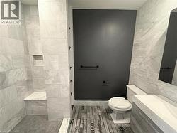 Welcome home to this elegant Victorian-style residence at 164 Catherine Street North—where timeless character meets modern comfort. This beautifully designed home features a spacious main floor with a stunning kitchen showcasing white subway tile with dark grout, dark cabinetry, stainless steel appliances, and direct access to a large backyard, perfect for entertaining. The living area highlights exposed brick and can be closed off from the generous dining room for added privacy. Upstairs offers three spacious bedrooms, including a large primary with exposed brick and a private balcony. The second bedroom is ideal for a home office, with an additional bedroom on the same level. This floor also features two beautifully finished bathrooms—one with a relaxing soaker tub and the other with an oversized tiled walk-in shower—plus convenient bedroom-level laundry. The top floor adds flexible living space that can serve as a private retreat, second living area, or dedicated home office. Throughout the home, black accents contrast elegantly with crisp white walls and flooring. Additional features include front parking and basement storage. A truly special Victorian-style home offering character, flexibility, and contemporary living in a sought-after location. Listed at $2,500 plus utilities. (id:27)