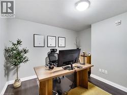 Acclamation Condos - Boutique Downtown Living with Rare & expansive Outdoor Space that includes a Fireplace! Welcome to this exceptionally spacious 1 bedroom plus large solarium suite, offering 1087 sq ft of interior living space plus a rare 450 sq ft private terrace - an outdoor extension seldom found in downtown Hamilton condominiums. Designed for flexibility, the solarium functions as a true second room, ideal for a home office, guest space or studio, allowing this suite to live more like a small two-bedroom. The north-facing exposure provides consistent natural light without excessive heat, making both the interior and terrace comfortable and usable throughout the day. A standout feature of this suite is the dual-sided indoor / outdoor fireplace, creating a seamless connection between the interior living area and the terrace. Enjoy the fireplace from inside during cooler months, or while entertaining and relaxing outdoors - a rare architectural feature that elevates both comfort and lifestyle. The highlight of this home is the oversized terrace, large enough to accommodate full outdoor dining, lounge seating and container gardens. This is not a typical balcony, but a true outdoor room - ideal for entertaining, working from home or unwinding in a private setting. Your pet will love this feature! The unit includes one underground parking space and one locker. Located on vibrant James Street North, steps to cafés, restaurants, galleries, transit and the GO Station, this offering combines generous interior space, exceptional outdoor living, a rare fireplace feature, and income security in one of Hamilton's most dynamic downtown neighbourhoods. (id:27)