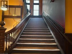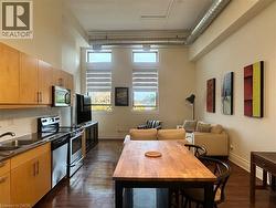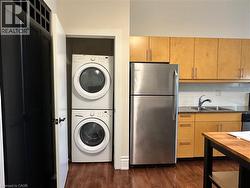 Welcome to this stunning, spacious open-concept suite in the Stinson School Lofts, offering escarpment vistas from the oversized windows! Enjoy seamless flow between the living, dining, and kitchen areas—perfect for entertaining or relaxing at home. Stainless steel kitchen appliances add a luxury touch. The large foyer features built-in shelves and a bench, offering both style and practicality. The primary bedroom boasts a huge walk-in closet, while the modern three-piece bath is equipped with a walk-in shower, and a bonus in-suite laundry for your convenience. Soaring 14’ ceilings, exposed brick and original maple hardwood floors add character and warmth throughout. Just steps from scenic trails, a dog park, golf courses, and local restaurants, this unique property offers the best of urban living. Stinson School Lofts won City of Hamilton urban design and architecture awards 2015 award of outstanding achievement and excellence in adaptive reuse. (id:27)