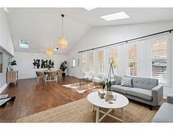 Set in one of Hamilton's most coveted east-end neighbourhoods, 211 Rosedale Avenue offers the perfect blend of lifestyle, comfort, and location. Just moments from Kings Forest Golf Club, Rosedale Arena, scenic nature trails, and the Escarpment Rail Trail, this is a home designed for those who love both the outdoors and city convenience. Inside, the layout is warm, bright, and incredibly functional. The show-stopping Great Room features soaring cathedral ceilings, skylights, and California shutters, creating an inviting space for everyday living and unforgettable gatherings. The heart of the home is the spacious kitchen, complete with a large island, generous prep space, tons of storage and room for casual dining. Outside is where this home really shines. The private, fully fenced backyard offers multiple areas for outdoor dining and lounging, along with a covered porch and outdoor kitchen overlooking the in-ground pool - creating a backyard setup that's ideal for everything from quiet summer mornings to lively evening gatherings. Even in the middle of winter, it's easy to picture warm days, open doors, and long nights spent entertaining in your own outdoor oasis. A versatile main-floor bedroom or home office and a stylish double-sink bathroom add flexibility for growing families, guests, or work-from-home living. Upstairs, you'll find two comfortable bedrooms, one is enhanced with a custom wardrobe and shelving system, providing a sleek and functional alternative to a traditional closet, while the finished lower level offers even more space with a large recreation room, office or gym area, full bathroom, and laundry with excellent storage. From its thoughtful layout to its unbeatable location, 211 Rosedale Avenue is a home that truly delivers. A rare opportunity in a neighbourhood people love to call home. Some photos virtually staged.