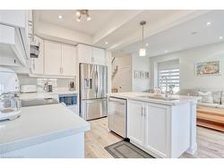 Welcome to 24 Southam Lane, an elegant end-unit townhouse on Hamilton’s desirable West Mountain. Nestled in a quiet community just steps from Hamilton-Niagara escarpment trails, amazing schools, essential amenities, and with Highway 403 access only 2 minutes away, this home offers ultimate convenience. With over 1,680 sq. ft. of beautifully updated living space, you’ll find luxury vinyl plank flooring, an upgraded staircase, a premium appliance package, an electric fireplace, and a new concrete patio, perfect for enjoying warm summer evenings. The spacious living room flows seamlessly into the open-concept kitchen featuring quartz countertops, stainless steel appliances, and upgraded cabinetry. Upstairs, discover a bright loft space ideal for a home office or play area, along with 3 generous bedrooms. The primary bedroom boasts a large walk-in closet and an updated glass walk-in shower. Don’t miss your chance to own this modern end-unit townhouse that combines luxury finishes and an unbeatable location. RSA.